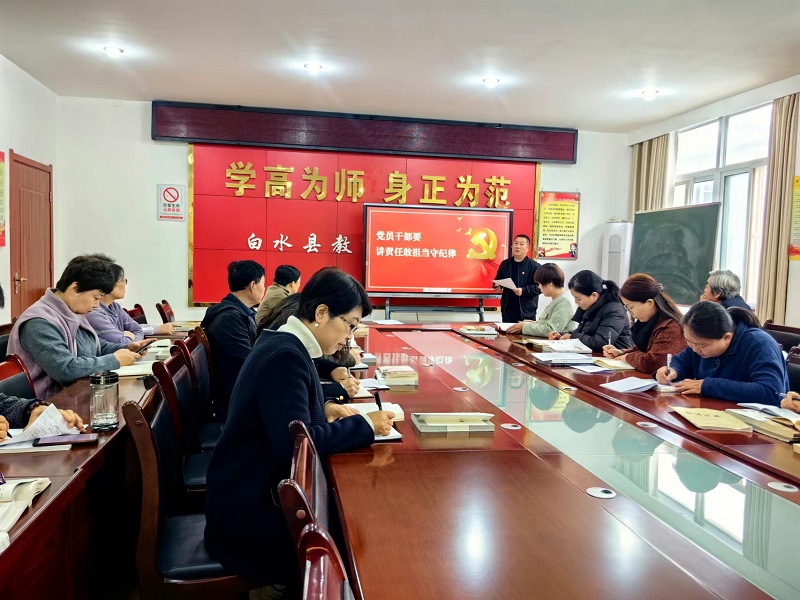 副书记白亮强调:全体党员、教师要认识到担当、纪律,是党员干部党性、作风的集中反映,是党员干部纯洁性的试金石。讲责任是前提和基础;敢担当是考验和检验;守纪律是要求和保障。党员干部的纯洁性要由责任来承载,由担当来体现,由纪律来保证。党员干部要切实把讲责任、敢担当、守纪律内化于心、外化于行。