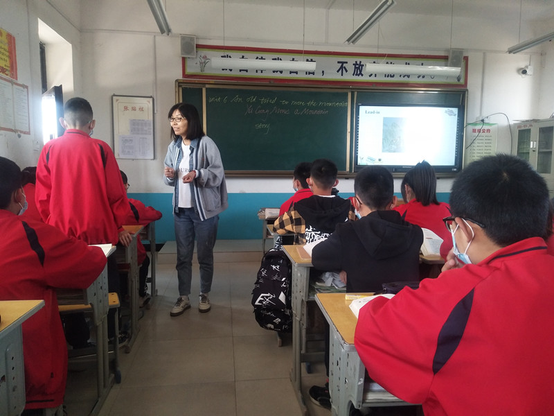 2022年5月5日第一节课,李艳茹在8.1班示范课《an old man tried to move the mountains》。学生潘嘉炜:“班主任利用歌曲“愚公移山”从中国神话故事情境导入课题。将故事图片与英文配对,播放听力让学生选出《愚公移山》主要内容。利用男女生对话多种形式理解课文,录制视频现场直播,及时纠正读音错误。学习短语重点句型(从前、把...放到...里、容纳一切、花费)。最后从愚公身上学到“如果你努力,一切皆有可能,永不放弃never give up ,这堂课我不仅学会新单词、短语、句型,还懂得了努力坚持的道理。”段宇佳:“课堂以对话形式学习口语发音准确、理解内容,懂得生活道理。”李嘉祥“在英语课堂学会知识还接受了传统文化精神。”