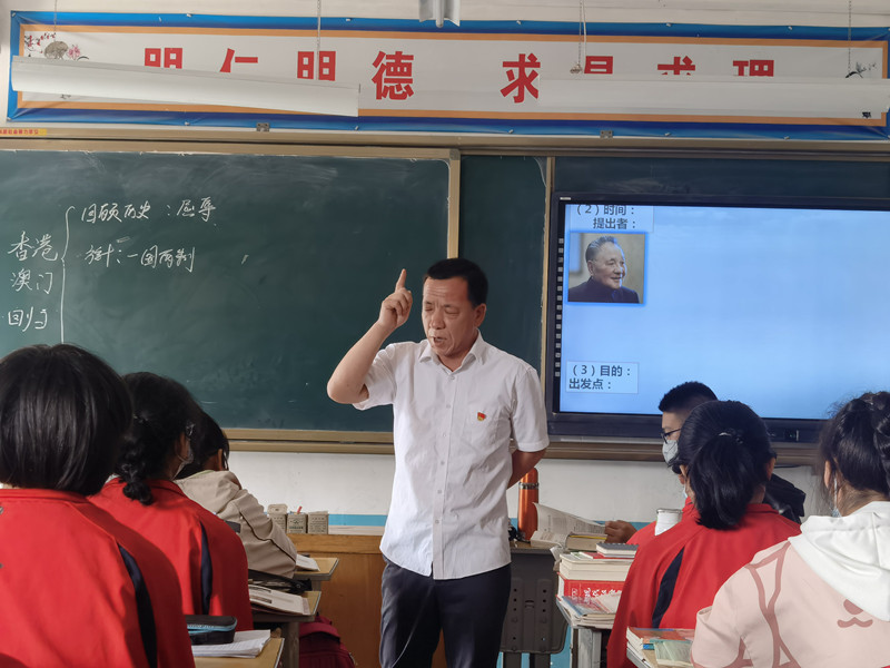 5月7日第三节课,梁晓宏在8.2示范课《香港澳门的回归》。学生潘文基:我总能被梁老师课堂幽默风趣的语言所吸引,课前播放《七子之歌》,从地理角度提问香港澳门知识,然后回顾历史屈辱,新中国面对历史遗留问题如何收回主权,详细讲了“一国两制”方针,讲邓小平谈判播放视频,回归情景激发起我们强烈爱国情怀,到最会总结回归意义,梁老师一环紧扣一环精彩课堂令人难以忘怀。”王映荷:“梁老师是我们亲切的大朋友,课堂讲的港澳回归,他诙谐幽默,情感饱满从历史遗留问题到回归讲的丰富有趣,让我受益匪浅。”郭奥丽:“幽默有趣的梁老师用通俗语言栩栩如生讲港澳回归,动作表情富有感染力能够吸引我们注意力,听他讲课真是快乐有趣。”