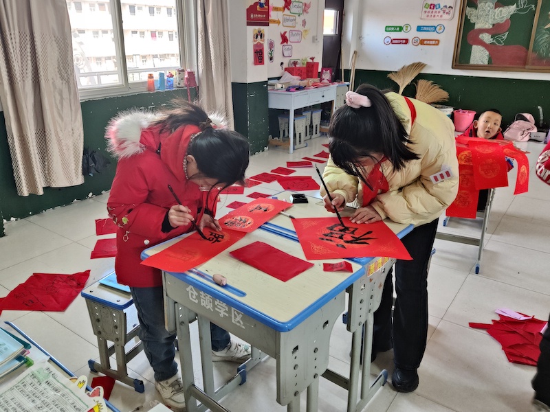 队员们将自己的新年祝福与愿望写进卡片,也将迎接新年的喜悦寄托在卡片里。小小的贺卡,为喜庆的节日增添了一道亮丽的风景。看,他们把纸盒、塑料瓶等物品进行了二次利用和包装,变成了一个个形状各异的炮竹、新年树。学校还为队员们采购了红纸,队员们用写好的对联和“福”字装点了校园环境,学校里到处都透着一股鲜活的年味儿。