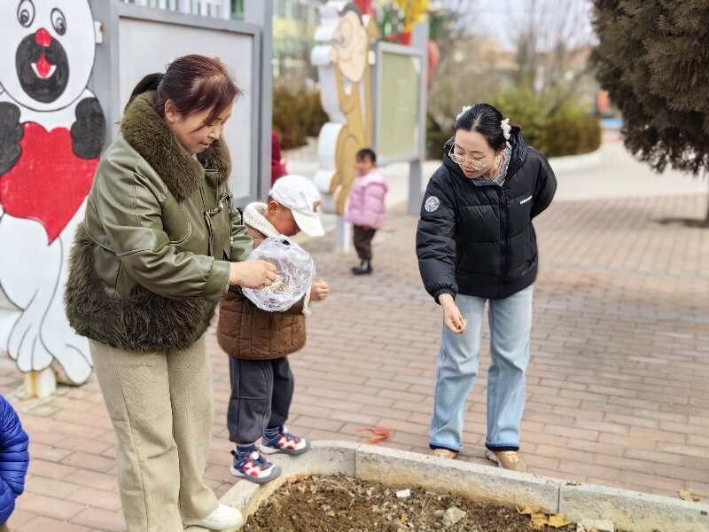 小小的画笔,在孩子们手中化作神奇的魔法棒。他们用五彩颜料,在画纸上描绘出心中的雨滴世界。有的雨滴像晶莹剔透的珍珠,有的雨滴像活泼跳跃的小精灵,还有的雨滴与嫩绿的小草、绽放的花朵相伴,构成一幅幅充满童趣与想象力的春日画卷。每一笔色彩,都是孩子们对雨水节气独特的理解与表达。“春种一粒粟,秋收万颗子。”在雨水节气,播种是一项重要的农事活动。孩子们在老师的带领下,来到幼儿园的种植园,亲手种下蔬菜种子。他们小心翼翼地挖土、撒种、浇水,动作虽稚嫩,却满含期待。小小的种子,承载着孩子们对生命成长的期盼,相信在雨水的滋润下,它们会茁壮成长,为幼儿园带来一片生机勃勃的绿意。