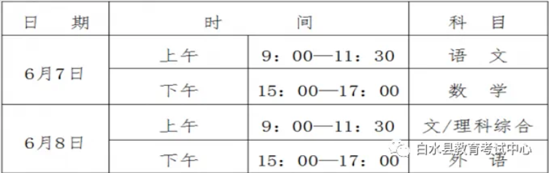 考试期间,上午7∶50,下午13∶50,考点开始进行身份认证,准予考生进入考点。语文、数学、综合科目开考15分钟后禁止迟到考生进入考点(学校)。6月8日外语科目考试时,考生须在下午14:45前进入考场(教室),之后禁止迟到考生进入考场。
