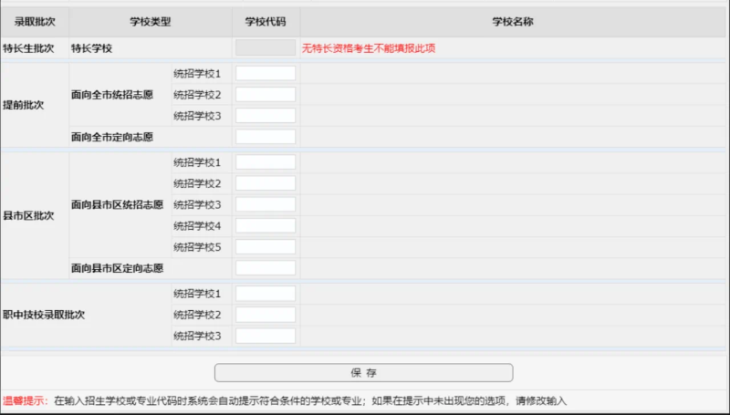 2.三年制中专考生填写1个三年制中专院校并填写一个专业。