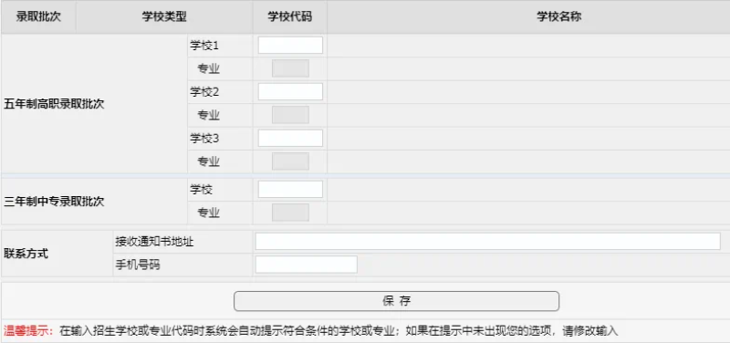1.五年制高职考生填写1至3个五年制高职院校,每个院校填写一个专业。