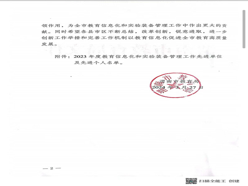 白水县电教中心荣获2023年度渭南市教育信息化工作先进单位称号