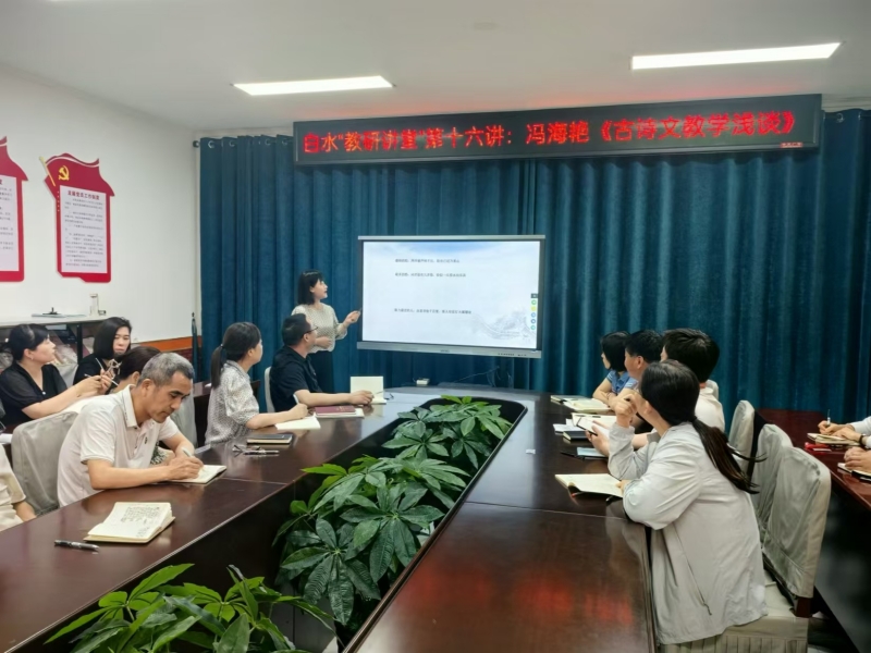 根据白水县教学研究室扎实落实“干部作风能力提升年”的相关要求,围绕课堂提质增效一条主线,通过开展具有针对性、实用性、指导性的专题报告,多途径提升教研员的综合业务素养。5月23日,白水“教研讲堂”第十六讲如期举行,小学语文教研员冯海艳作了题为《古诗文教学浅谈》的专题报告。
