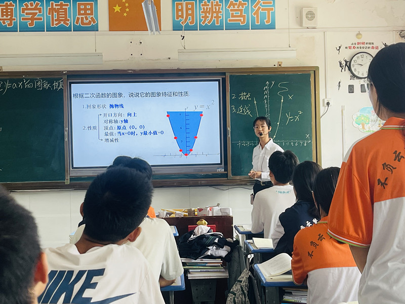 上午,由北塬镇中张悦老师与西固镇中侯深琳老师就《22.1.2二次函数的图象和性质(1)》进行了同课异构课堂展示,两节课各具特色。侯深琳老师采用“共同探究、比较迁移、总结归纳”的方式,课中注重学生对知识的建构和探索,关注引导学生自己发现、自己总结、自己提升的过程,类比教学、数形结合的渗透,让学生在潜移默化中落实核心素养。张悦老师整节课类比研究一次函数的图像与性质的方法,让学生在课堂上进行画图、观察、比较、类比等探活动,数形结合思想的挖掘、类比迁移教学渗透使得学生轻松获得新知的同时,形成良好的思维习惯和学习方法,整节课既培养了学生的探究新知的能力,又更好的落实大单元教学。