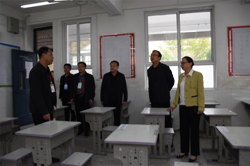 副县长刘亚平、教体局局长刘杨民陪同省市督考团考前检查考场布置情况
