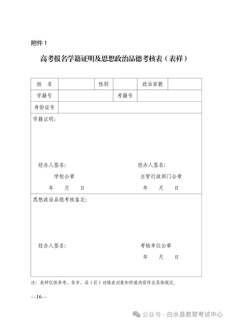 ④《2026年高考报名学籍证明及思想政治品德考核表》(只需要办理思想政治品德考核)。