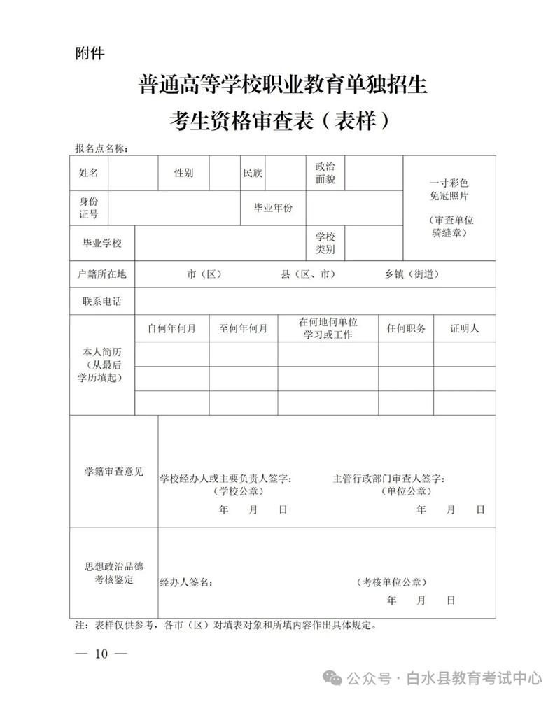 ⑤普通高等学校职业教育单独招生考生资格审查表。