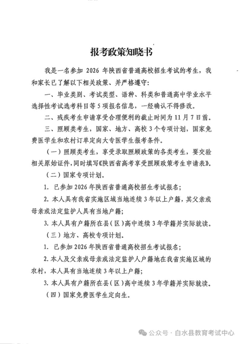 ⑤报考政策知晓书(考生、家长都要签字)。