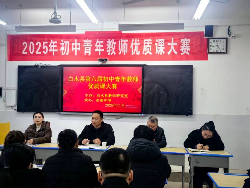 为进一步落实新课标理念,促进青年教师专业成长,提升课堂教学质量,白水县第六届初中青年教师优质课大赛于2025年11月27日在彭衙中学如期举行,大赛涵盖数学、英语、物理、化学和生物五门学科,共有34名教师参赛。