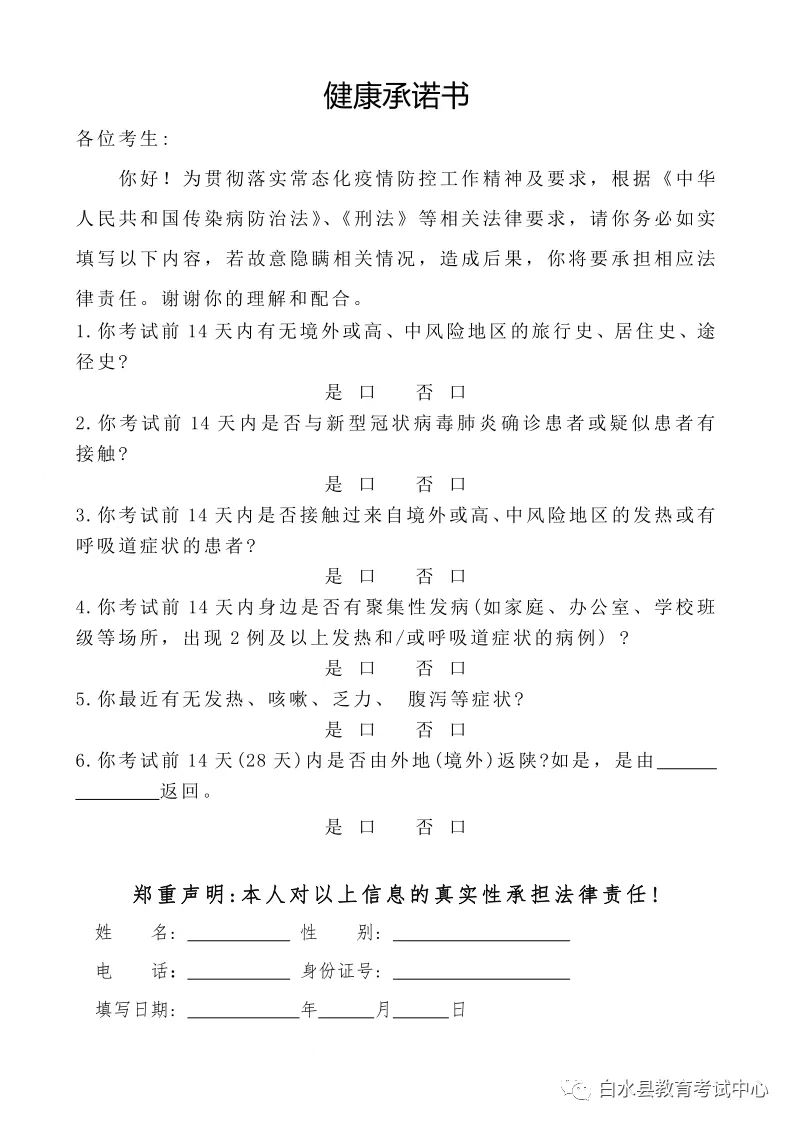 7.为防止因疫情变化延误考试,请在外省考生及时关注白水县疫情防控政策,提前规划返回白水时间。