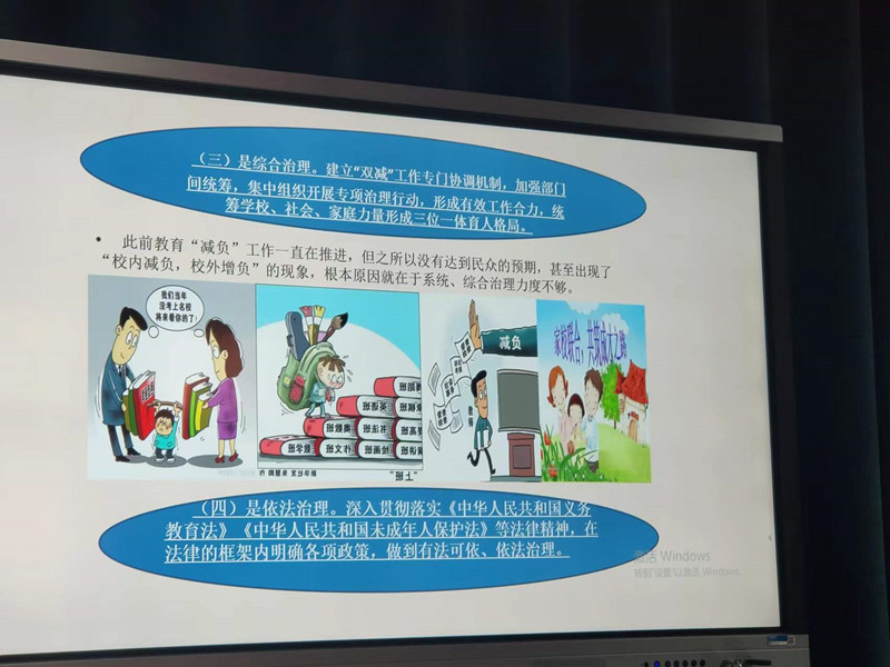 讲座内容分为四部分,一是讲解五项管理主要内容和要求;二是介绍“双减”政策的背景、过程、总体思路和总体目标;三是说明“五项管理”和“双减”政策落实督查情况;四是讲述“双减”下一步工作。