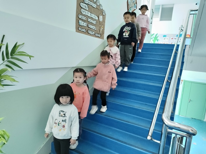 教师们通过视频、儿歌、图片等形式与孩子们一起探讨,让孩子们结合自身经验找到正确答案。幼儿观看上下楼梯的视频,学习手指儿歌,知道上下楼梯最安全的做法。纸上得来终觉浅,绝知此事要躬行。为了让幼儿感受得更深刻,我们进行了上下楼梯的安全实践。孩子们排着整齐的队伍,有序地上下楼梯,做到了不推不挤、不打闹。