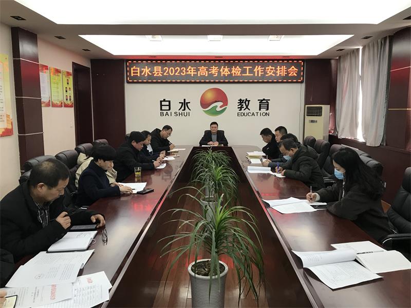 白水县2023年普通高校招生体检工作即将开始。今年是我县采用无纸化体检的第一年,为了给考生提供便利,顺利完成体检工作,白水县教育局、教育考试中心高度重视,成立高考体检工作小组,多措并举、精心安排高考体检工作,并于1月31日召开了2023年高考体检工作专题会议。