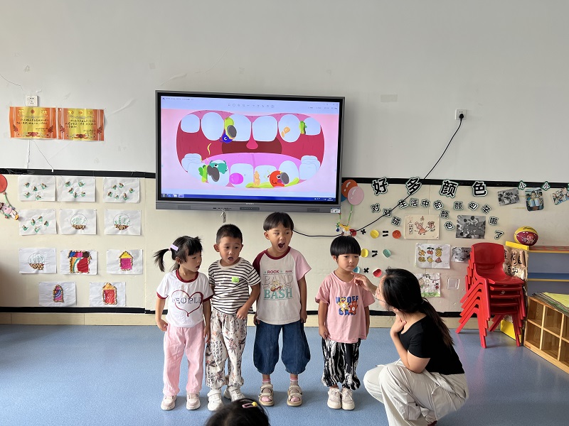 班级教师对幼儿进行牙齿保健知识讲解,让孩子们了解到保护牙齿的重要性。通过形象的牙齿模具,让孩子们增强了保护牙齿意识。