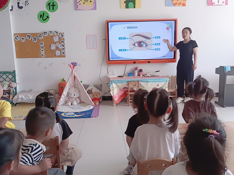 各班教师根据幼儿年龄特点开展了主题教育活动,通过视频、图片、儿歌及知识科普等方式让幼儿直观了解到如何保护眼睛和眼保健操的重要性。