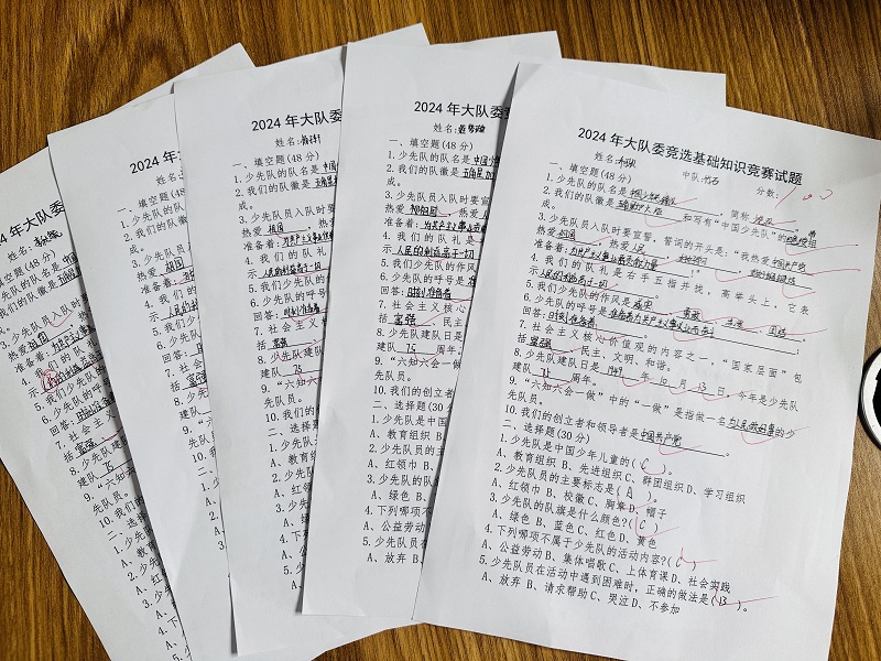 最终竞赛以笔试的形式进行,以“六知六会一做”、队旗、队徽、队礼等基本知识为内容。大队部成员和优秀中辅导员负责全程监考。候选队员们沉着冷静,奋笔疾书,认真答卷,一笔一划的写下心中的答案,展现了良好的风貌。
