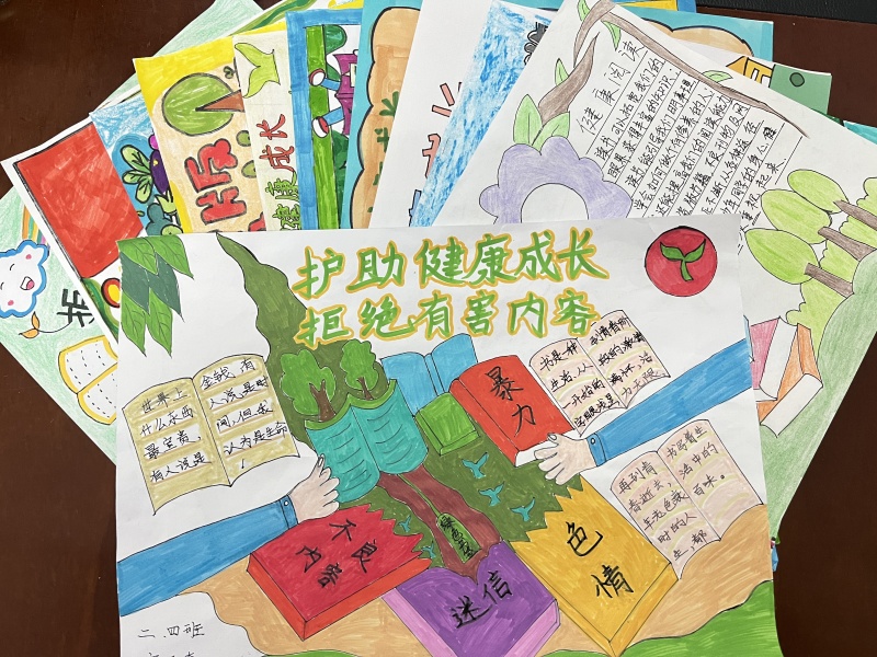 围绕“护助少年儿童健康成长,抵制有害出版物和信息”为主题,各班鼓励学生以制作短视频和手抄报的形式,讲述学校、社会开展的各类版权宣传活动,树立版权意识等。
