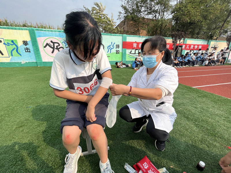 在紧张激烈的比赛背后,校医穿梭于各个赛场之间,密切关注着运动员们的身体状况,一旦发现异常,立即上前询问并提供专业的医疗处理。同时,他们还向师生们普及了运动伤害预防与急救知识,提高了大家的自我保护意识和能力。