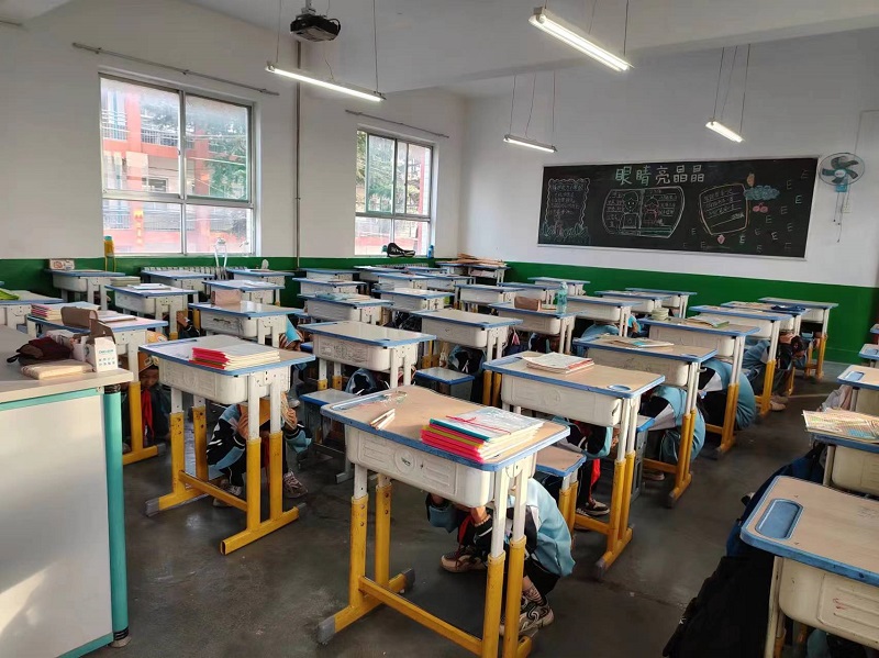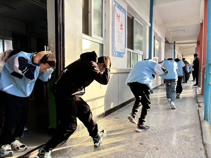 随着警报声的响起,防震安全演练正式开始。同学们在老师的引导下,先躲到课桌底下紧急避险,待情况稳定后迅速从座位上站起,双手护头,按照指定的疏散路线有序撤离。在疏散过程中,大家保持冷静、有序,没有出现推挤、踩踏等危险情况。