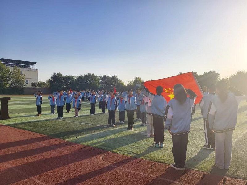 西固学校大队辅导员吴琦琦带领新老队员呼号。嘹亮的呼号声响彻云霄,每一个字都深植少先队员们的心田。