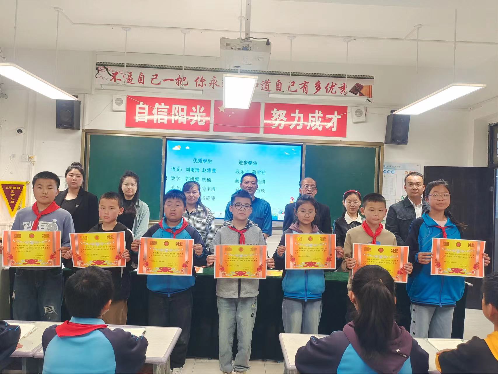 首先由教导处组织为优秀学生、进步学生颁发奖状。班主任以及各任课教师对班级和各学科学情等方面进行分析。六年级优秀学生代表郭妍馨、进步生代表石佳琪分享了学习经验和心得。教导主任李小凤为毕业班工作做出部署。段徐鸣主任进行动员讲话。全体六年级学生进行承诺宣誓。