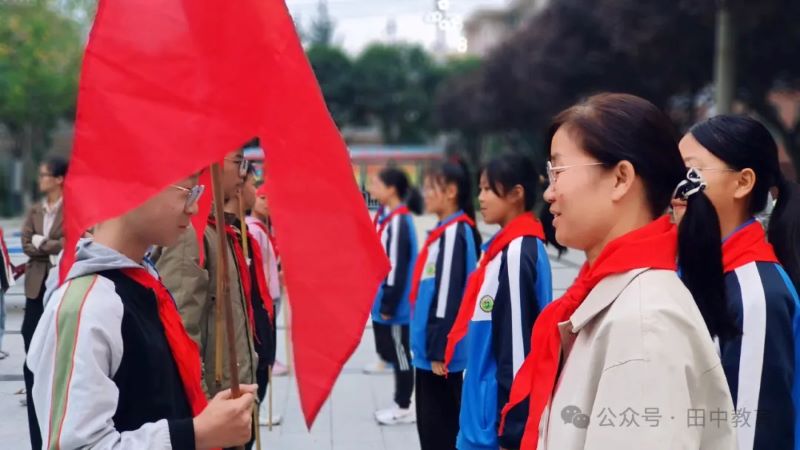 星星火炬闪耀着金光,照亮了前进的道路。我们是新世纪的雏鹰、未来和希望,系好红领巾,薪火永传承。七年级的少先队员们,这不是简单的仪式,而是纪念,是祝福,更是激励。一个个朝气蓬勃的面孔、一张张微笑的脸庞在庄严的仪式中绽放。无论成长中的这些少年如何变化,不变的始终是那一片赤诚与坚定的信仰。