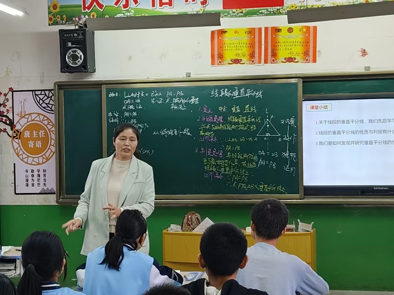 刘春芳老师送教的是八年级《线段垂直平分线的性质》。刘老师的课堂条理清晰,注重学生思辨能力和创造力的培养,鼓励学生提出自己的解决方案及推理过程,促进了学生的思维发展。
