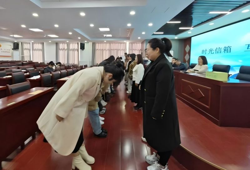 接着,师傅与徒弟互相为对方书写温馨寄语,表达对未来一年的美好愿望,并精心折叠好装进信封,投入时光信箱,期待来年一起相约取出信件,查看愿望是否达成。随后,进行了庄重而又温馨的拜师仪式。徒弟鞠躬,那是敬意的表达,如春风拂面,温暖人心,饱含着对师父的尊崇与感恩。师父还礼,这一简单的动作,却传递着师徒之间的信任与承诺,仿佛在诉说着未来携手前行的坚定决心。