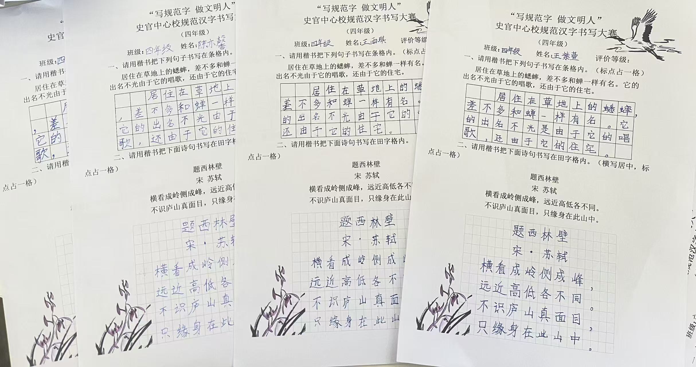 规范书写笔尖行 汉字之美共传承 ——史官中心校学生规范汉字书写活动