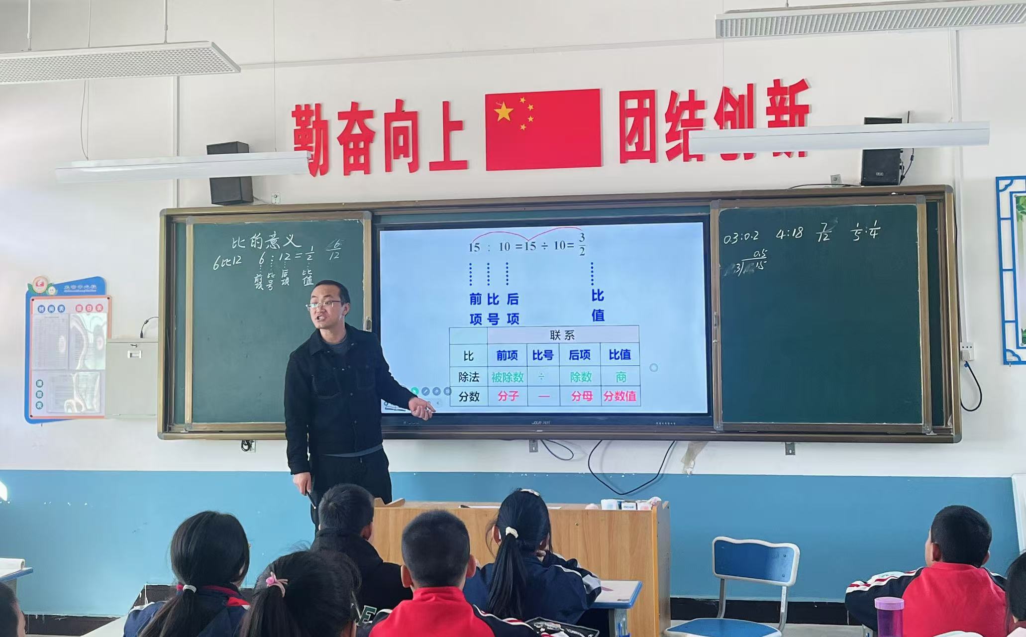 刘俊老师在情境导入后,鼓励学生根据自学提示探究、理解比的意义以及比与分数、除法之间的关系,让学生充分思考、深度交流、敢于质疑,真正把学生放在课堂的正中央。整节课节奏明快,环环相扣,在帮学、练学、延学中取得良好的教学效果。