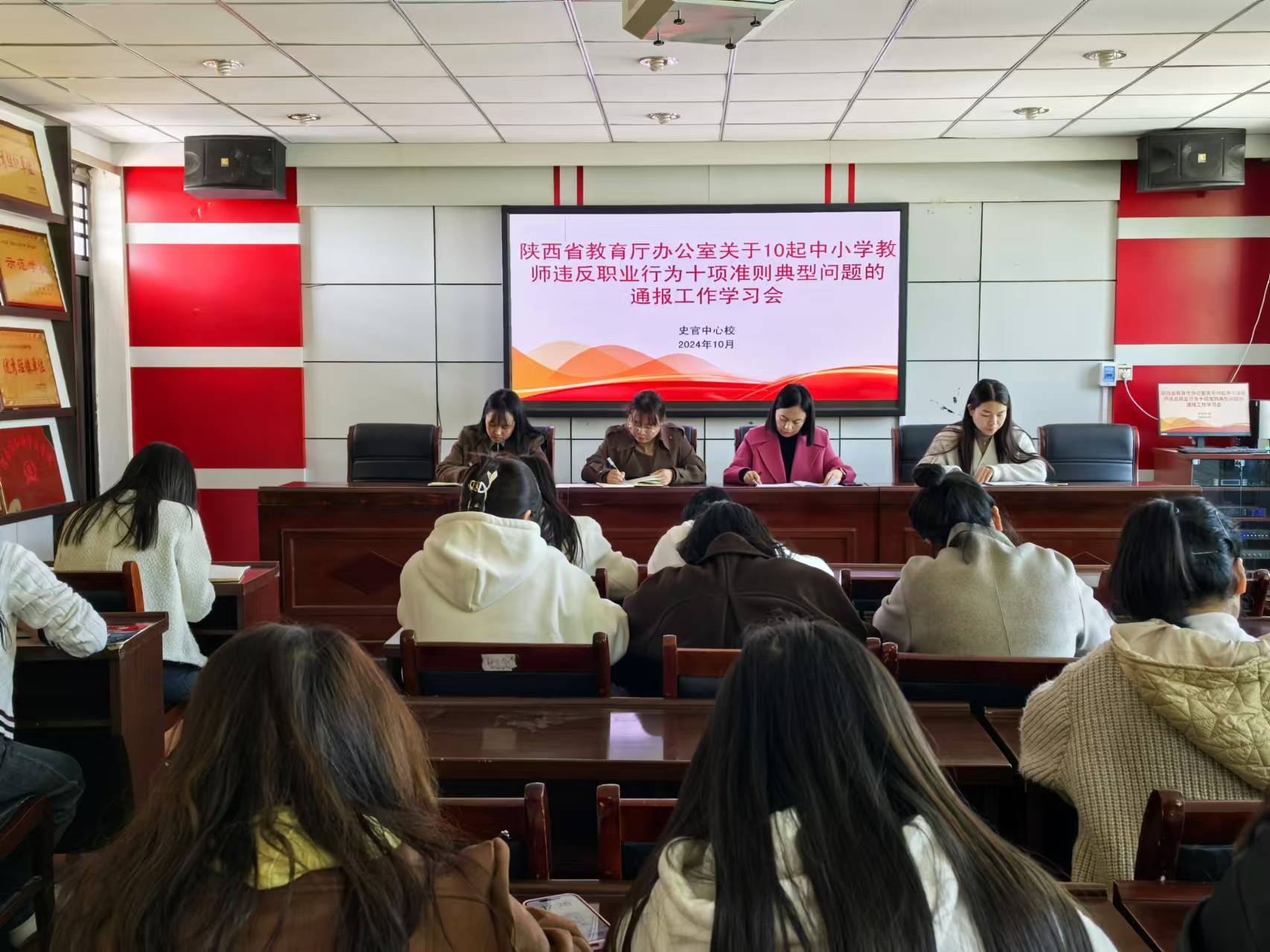 师德如山齐天高,师风似水流不绝。为进一步强化史官中心校师德师风建设工作,全面提升教师队伍思想政治素质和师德师风建设水平,营造风清气正的教育生态,10月28日中午,史官中心校全体教师齐聚三楼会议室,召开了以“坚守师德底线,铸就教育辉煌”为主题的师德师风专题会议。
