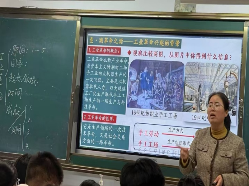 为发挥骨干教师示范引领作用,精准定位课堂教学目标,确保教育教学有的放矢,武娟娟、朱晓妮老师,分别在九年级四班、八班教室进行了道德与法治、历史示范课教学。
