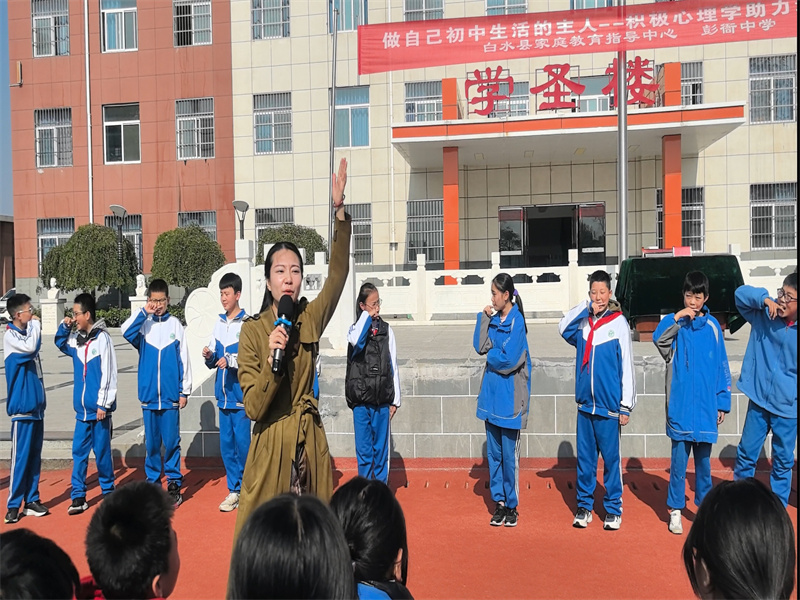 10月29号,彭衙中学邀请到美国加州整合大学CIIS心理学硕士、国家二级心理咨询师、中国心理卫生协会会员、陕西省家庭教育协会理事、陕西省儿童心理协会积极心理学专委会委员黄孜孜,为彭衙中学全体师生开展了一场以“做自己初中生活的主人——积极心理学助力幸福人生”为主题的心理健康讲座。