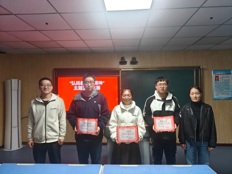 评委们分别从演讲内容、语言表达、仪表仪态、演讲效果等方面对参赛教师进行现场打分。经过激烈的角逐和公平、公正的评选,最终评出一等奖一名、二等奖两名、三等奖三名。随后,评委为获奖选手颁奖。