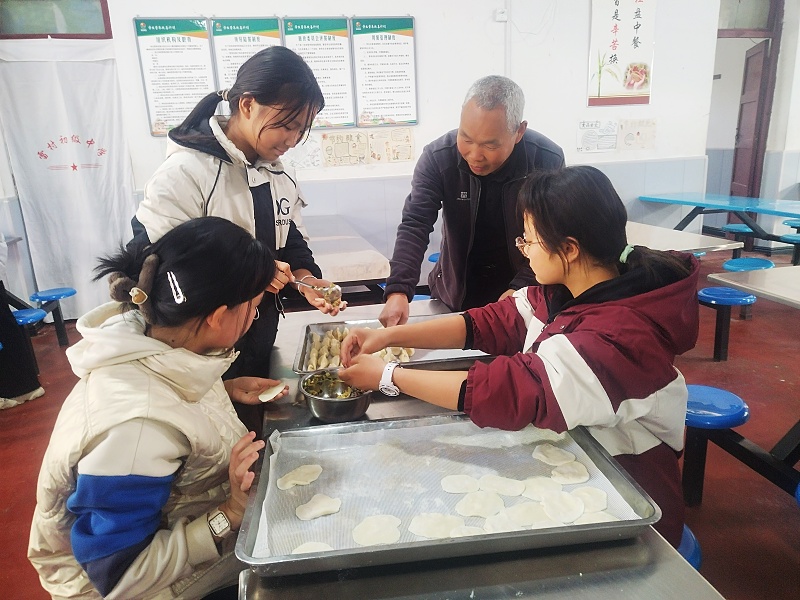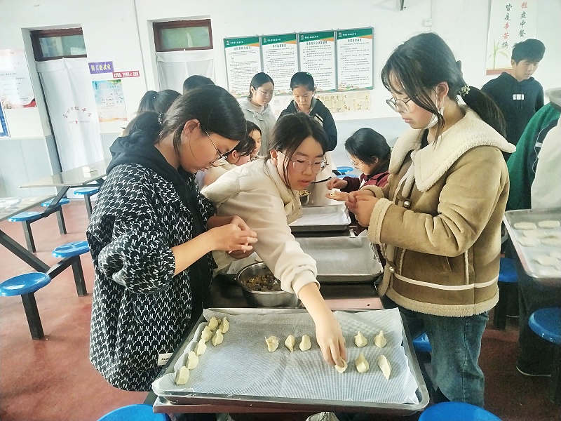 学生们积极参与到包饺子的活动中,老师在一旁耐心指导,现场气氛热烈而温馨。大家一边包饺子,一边聊着天,仿佛整个校园都被这份温暖和欢乐所包围。通过这样的活动,学生们不仅学到了传统美食的制作方法,还深刻体会到了劳动的乐趣和意义。吃饭时学生吃着饺子渡过一个有意义的立冬节日。
