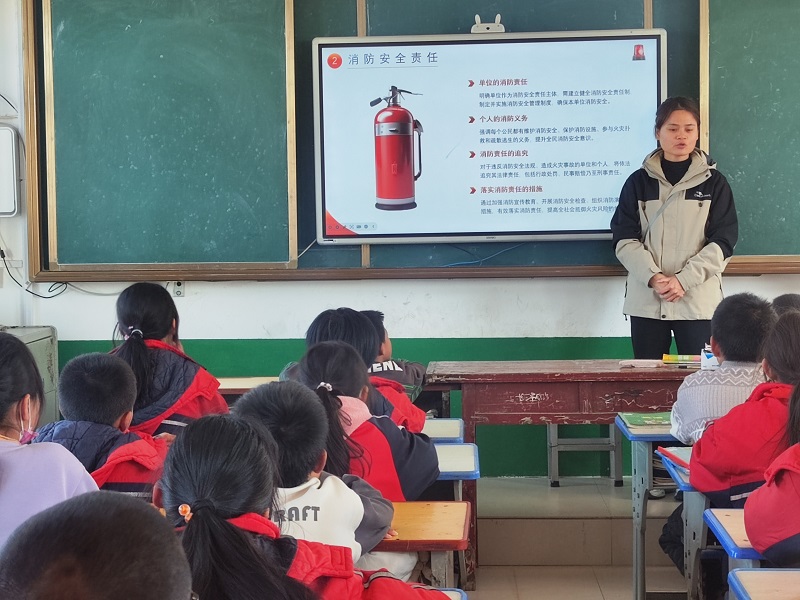 2024年11月9日是第33个全国消防日。为了保障学生生命安全,树立防火意识,提高学生的自我保护能力,普及消防安全知识,了解基本的消防知识,学习火灾中简单的自救方法,提高抵御火灾风险的能力,切实筑牢校园安全“防火墙”。11月9日,北井头中心校李家卓小学开展了消防安全教育活动。