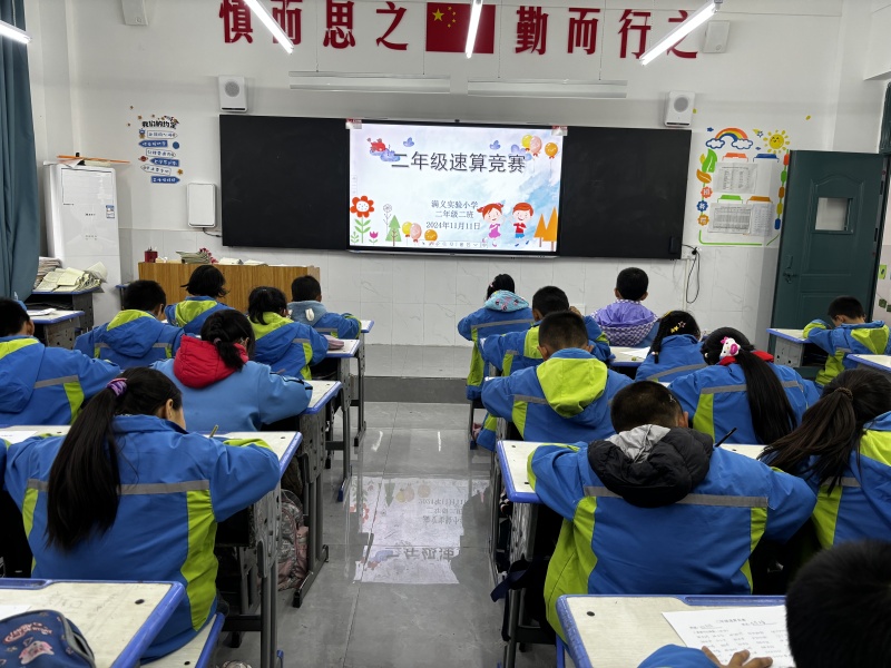 为全面推进素质教育,激发学生学习数学的兴趣,提高学生的口算能力和计算速度,培养学生“正确、快捷、合理、灵活”的计算习惯,促进学生数学素养的全面提升,11月11日,满义实验小学组织开展了数学速算竞赛活动。