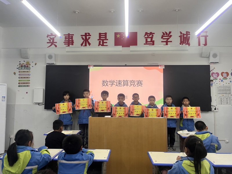 “百舸争流,奋楫者先;千帆竞发,勇进者胜”,比赛结束后,各老师认真批阅了学生的试卷,并根据准确率、计算速度、工整程度,评选出本班的“速算之星”,同时为他们颁发奖状表示鼓励。上台领奖的同学个个喜笑颜开,无比自豪。