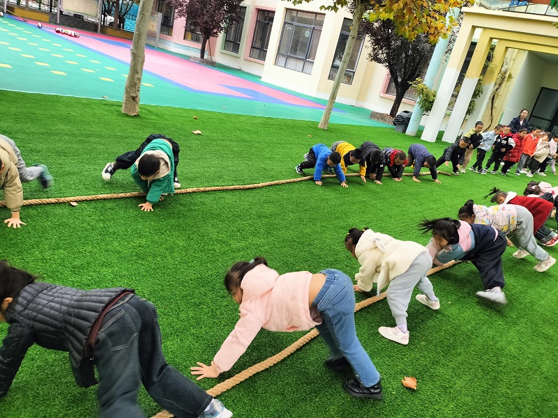 《3-6岁儿童学习与发展指南》中提出:幼儿要以游戏为基本活动,户外自主游戏是幼儿学习成长的重要途径和有效方式。为促进幼儿身心健康发展、提升教师在游戏中的观察、指导能力,11月13日上午,白水县彭衙幼儿园开展了以“游戏点亮童年 展评促进发展”为主题的户外游戏展示活动,邀请年级组教师进行观摩。