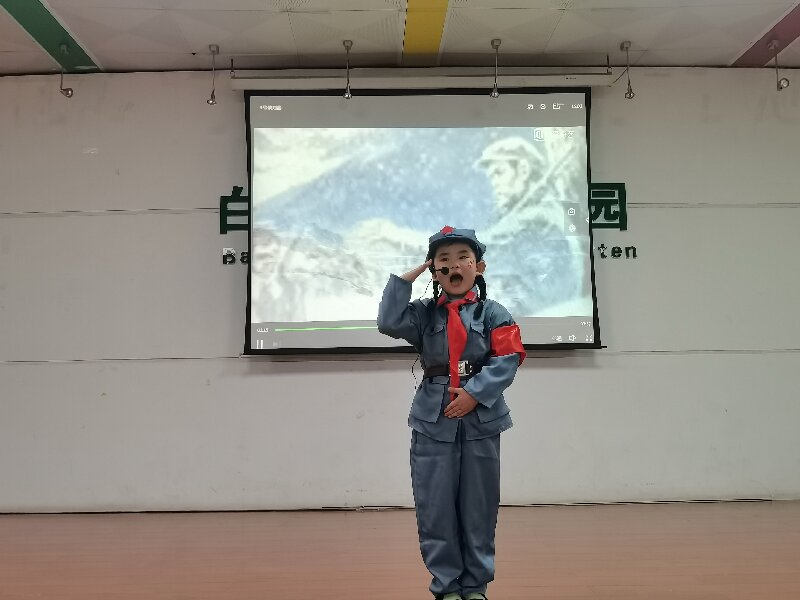 站在舞台上,孩子们用稚嫩却坚定的声音,讲述着那些感人至深的红色故事,仿佛带领我们回到了那段激情燃烧的岁月。红色故事《军礼》《吃水不忘挖井人》《鸡毛信》《小石头的故事》《抗日小英雄王二小》《长征路上的红小丫》《我叫解放军》《董存瑞炸碉堡》《雷锋的故事》《小英雄雨来》《小萝卜头的故事》《永远的九岁》《这个世界我来了》等经典故事在孩子们的口中被重新演绎。沉浸在故事中的他们仿佛自己就是故事中的小英雄,正在经历那些波澜壮阔的历史时刻,他们用生动的语言,丰富的表情,将革命英雄们的英勇事迹展现得淋漓尽致,将那些英勇无畏、舍生取义的革命精神,传递给了在场的每一个人。