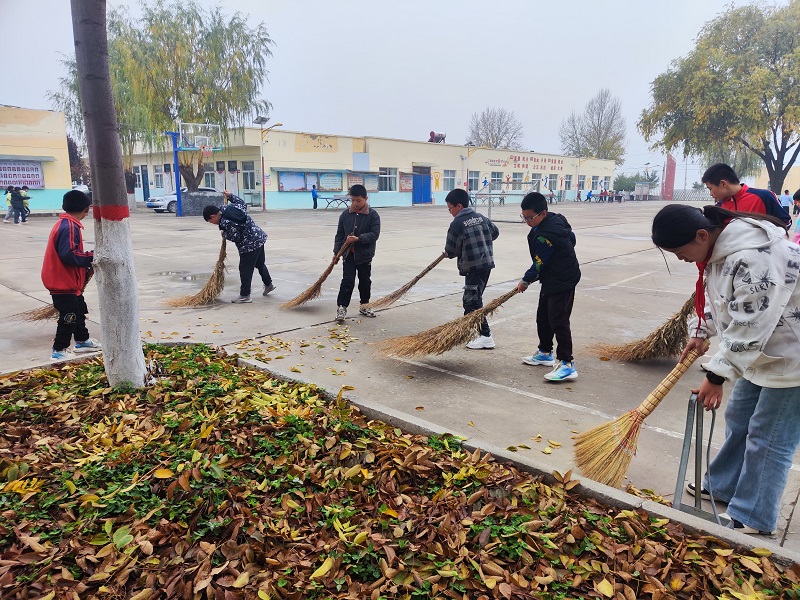 每一片落叶,都曾在春日里萌芽,在夏日里蓬勃,如今在秋风中谢幕,这是专属秋季的浪漫。与此同时,片片纷飞的落叶给校园的清扫工作带来了极大的挑战。三至六年级同学分工合作,手持清扫工具,热火朝天地展开行动。凛冽的寒风吹不灭他们的热情,在大家的合力劳动下,校园变得干净整洁。