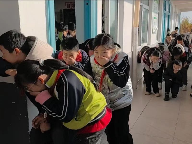 演练前,德育安全处结合学校实际,认真制定演练活动方案,并召开全体教职工会议,明确职责要求。演练过程中,随着警报的响起,各负责教师立即到达指定岗位,班主任指挥班内学生用湿毛巾捂住口鼻迅速、有序地撤离。