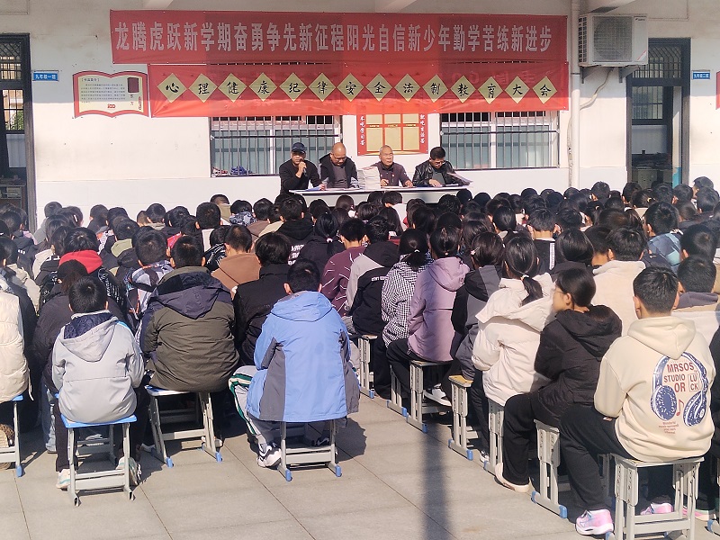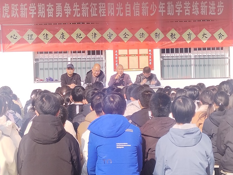 时光如梭,半学期已过,学校严密组织期中作业评价检测教学质量后,为在全校师生营造积极进取的学习和争做文明标兵的教育氛围。2024年11月20日中午,雷村初中全体师生召开期中心理健康、纪律、安全、法制教育大会,副书记李宏福主持会议。