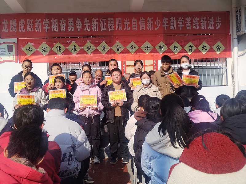 校长李海奇对前半学期教育教学做了全面总结,树立标兵也是希望同学们学习有目标,做有榜样,在后半学期奋发向上,砥砺前行。并为学生做了法制及心理健康报告,从“感恩,责任、勤奋”做了全面的分析,感恩父母的养育之恩,如何报答就是学会做人、学会求知,只有成才是对父母的最大的回报,这也是一份责任和担当,如何实现只有通过勤奋学习用知识充实自己,才能实现感恩。希望学生在今后寒冷的冬天,能刻苦学习,心理阳光快乐,健康成长,励志成才。