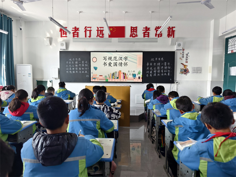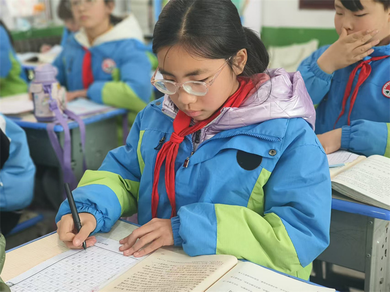 同学们个个坐姿端正,握笔规范,神情专注,用心书写每一个笔画、每一个汉字。他们的字迹或顿挫有致、苍劲有力,或端正秀丽、流畅自然,充分展现了孩子们蓬勃向上的精神风貌。