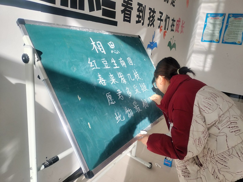一支粉笔育桃李。小小的粉笔在老师手中漫舞飞扬,飘逸洒脱。黑板上的字,结构匀称,笔画流畅,章法自然,字里行间彰显老师们扎实的专业功底,传递着老师们对教育事业的执著和热爱。
