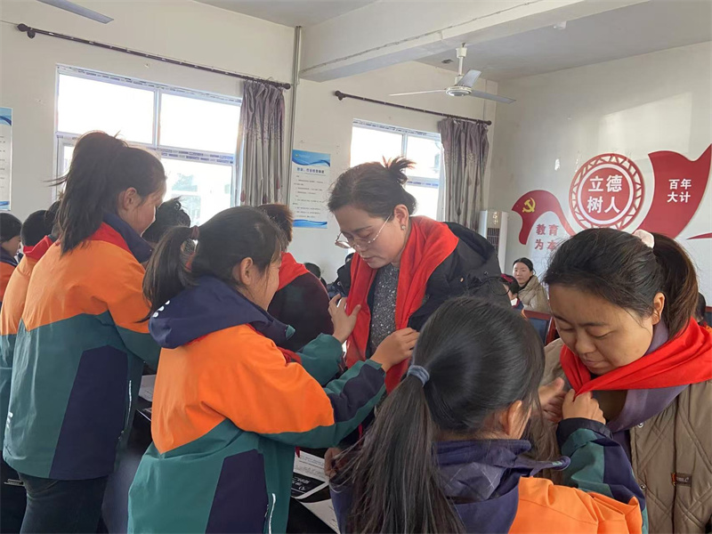 参加本次会议的有学校领导、家长代表、校外辅导员代表、中队辅导员老师代表以及少先队员正式代表,大会开始前,少先队员为出席本次大会的领导及来宾敬献红领巾。